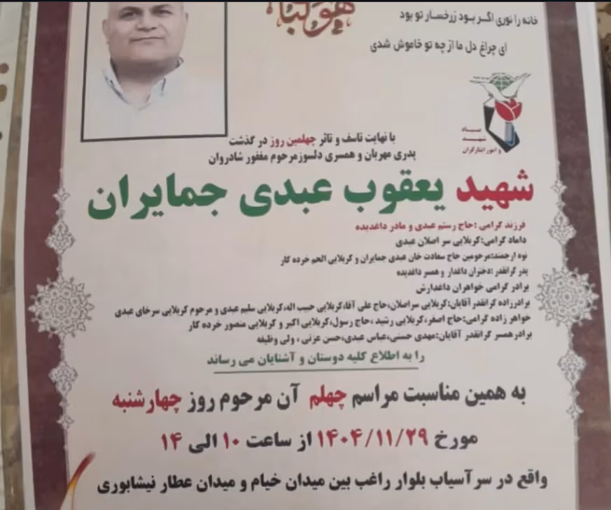 یعقوب عبدی جمایران، ۴۵ ساله، شهروند ساکن فردیس کرج، در تاریخ ۱۹ دی ۱۴۰۴ در جریان اعتراضات سراسری کشته شد.